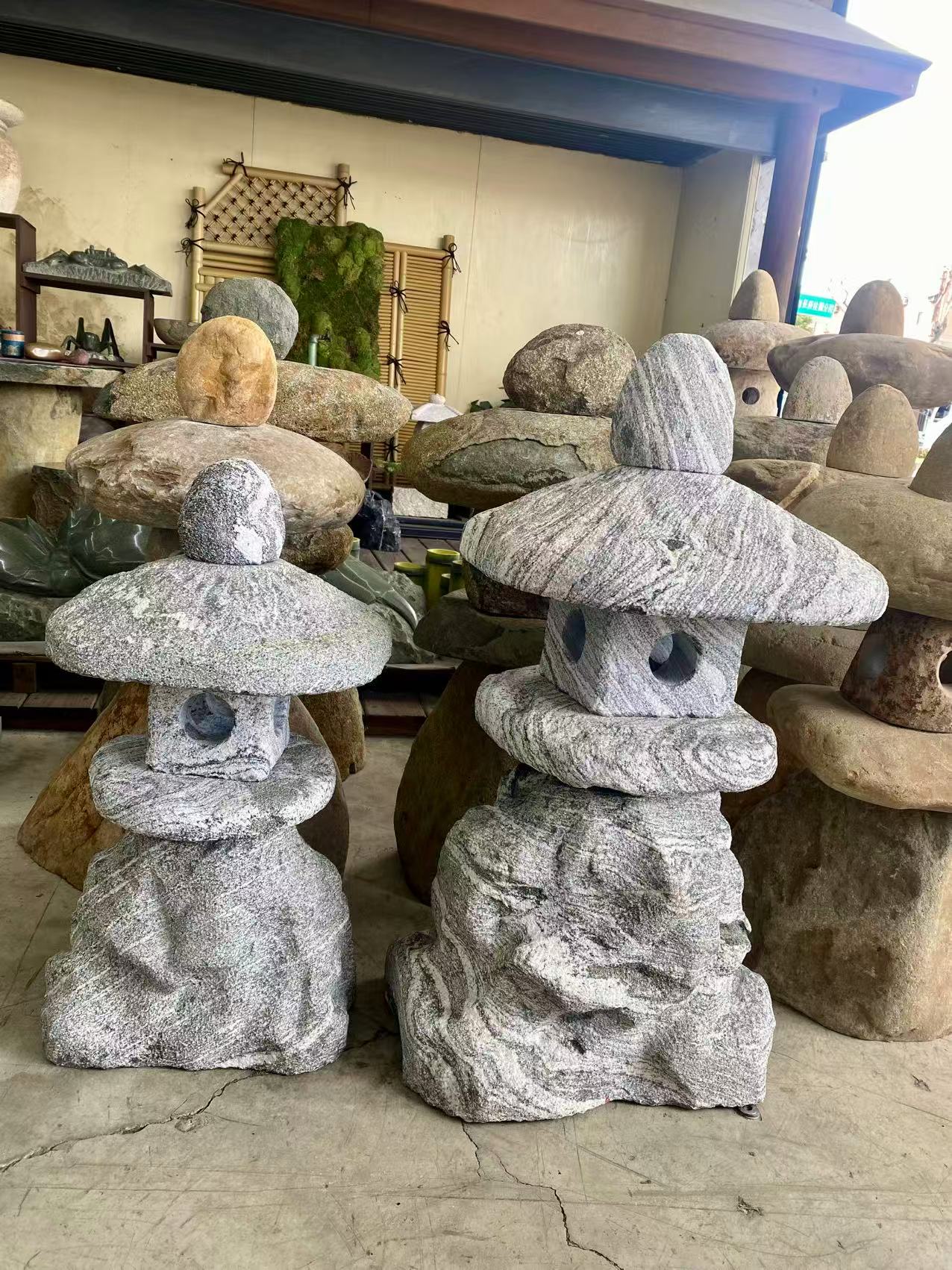 在庭園設計中,灰白自然石燈常配置於步道轉折、水景周邊或入口視覺節點, 可與卵石、石米、溪扁石等景觀石材搭配, 讓整體造景層次更顯沉穩、耐看, 兼顧實用照明與景觀美感需求。