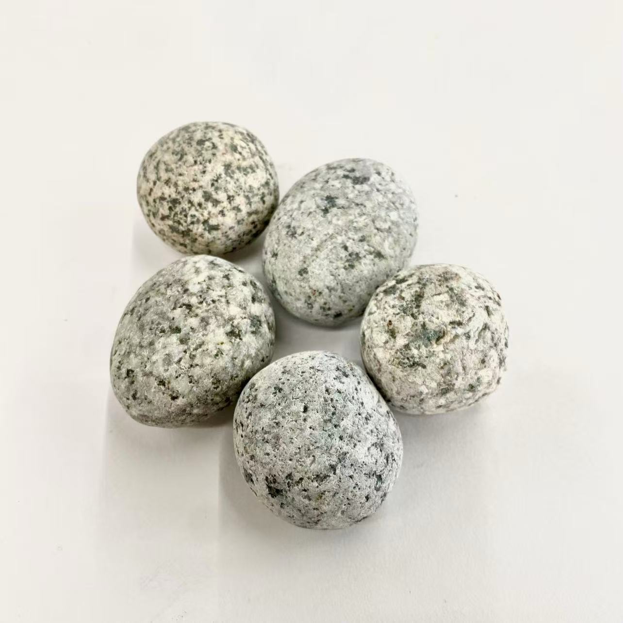 芝麻蛋石表面布滿如芝麻般細小黑點或斑紋。在園藝景觀中,它多指灰白色調、質地堅硬且外型圓潤如蛋的鵝卵石,因外觀神似芝麻點而得名。