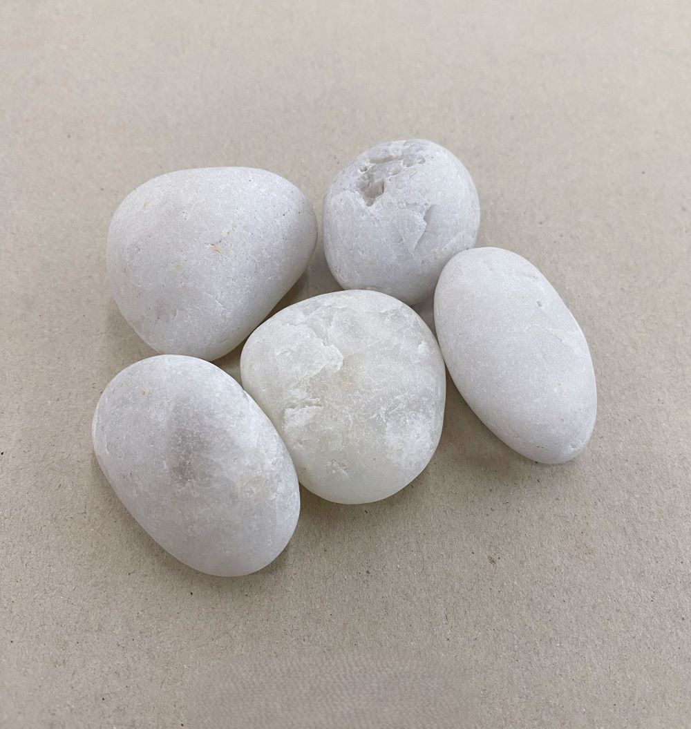 天然白卵表面光滑、硬度高、環保耐用,由天然石材經水流沖刷而成,溫潤如玉。 其自然表面與礦物紋理能與木材、植栽、水景形成柔和對比, 讓整體空間更顯層次與寧靜。