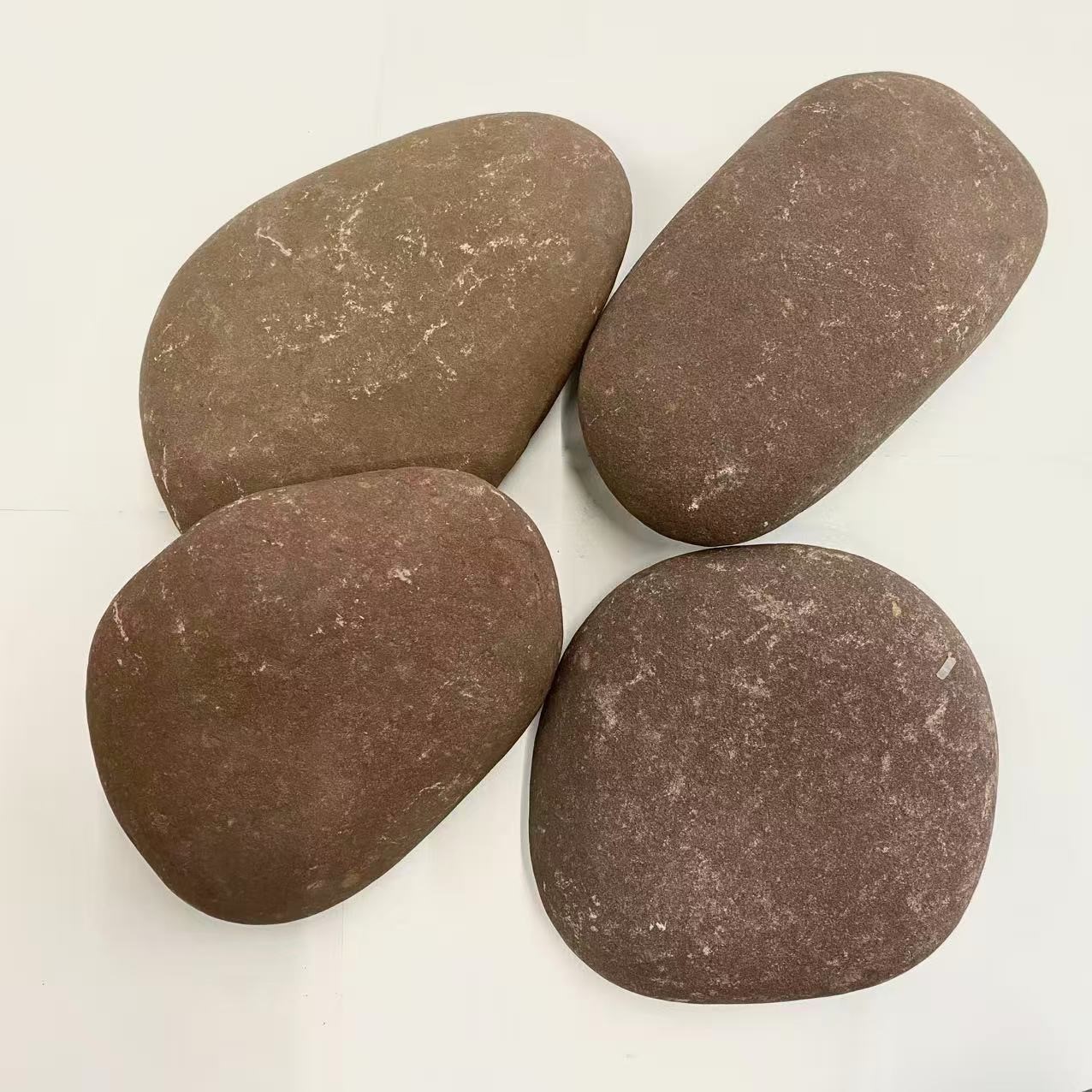 紅扁石呈扁平橢圓狀,其質地堅硬、吸水率低,保留了石材原始的圓潤觸感。